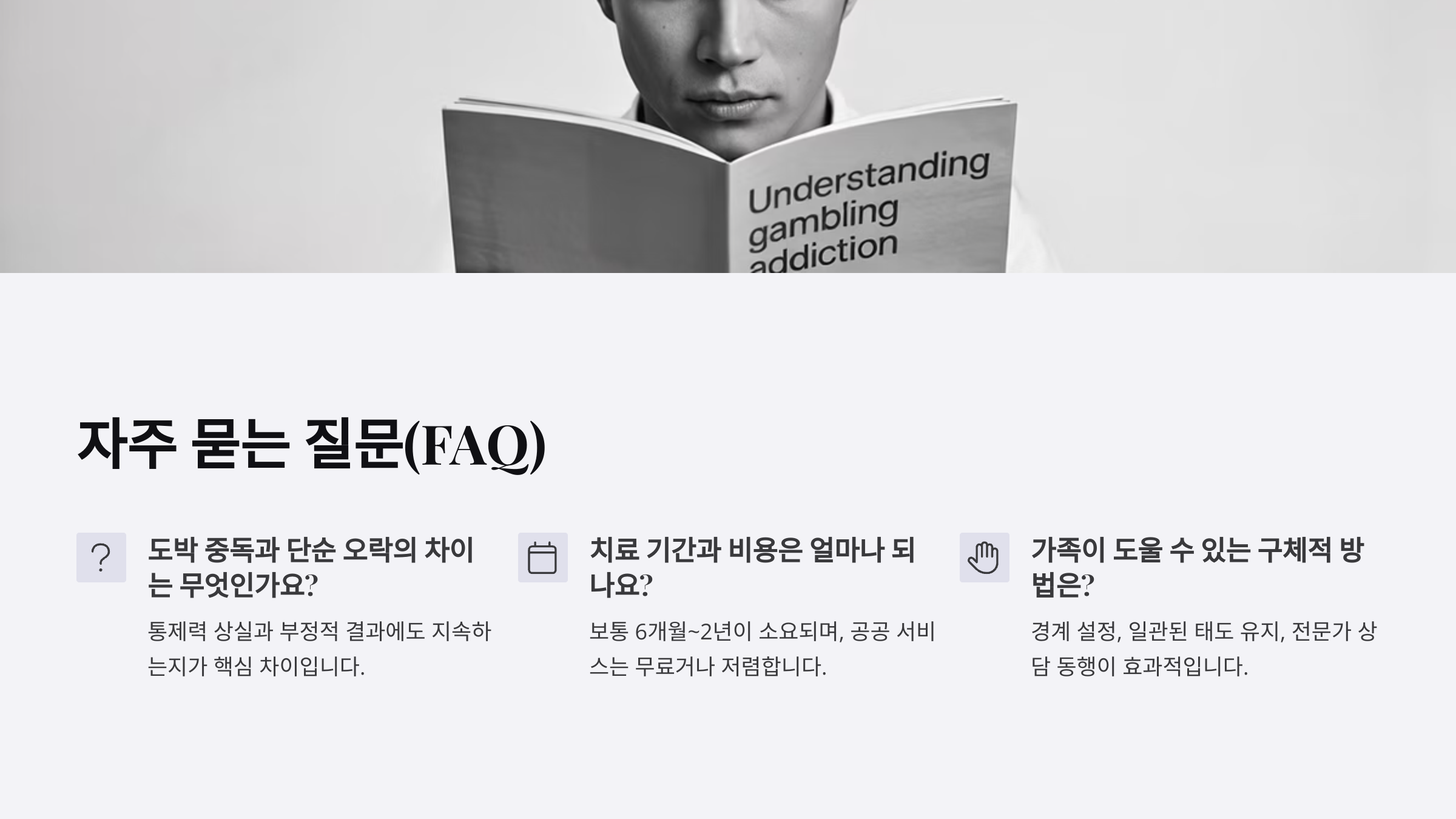 가족 구성원이 도박에 빠진 경우, 그 원인을 단순히 '성격'이나 '게으름'으로 판단하면 도움을 줄 수 없어요. 중독은 이해와 구조적인 접근이 필요한 복잡한 문제라는 점을 기억해야 해요.