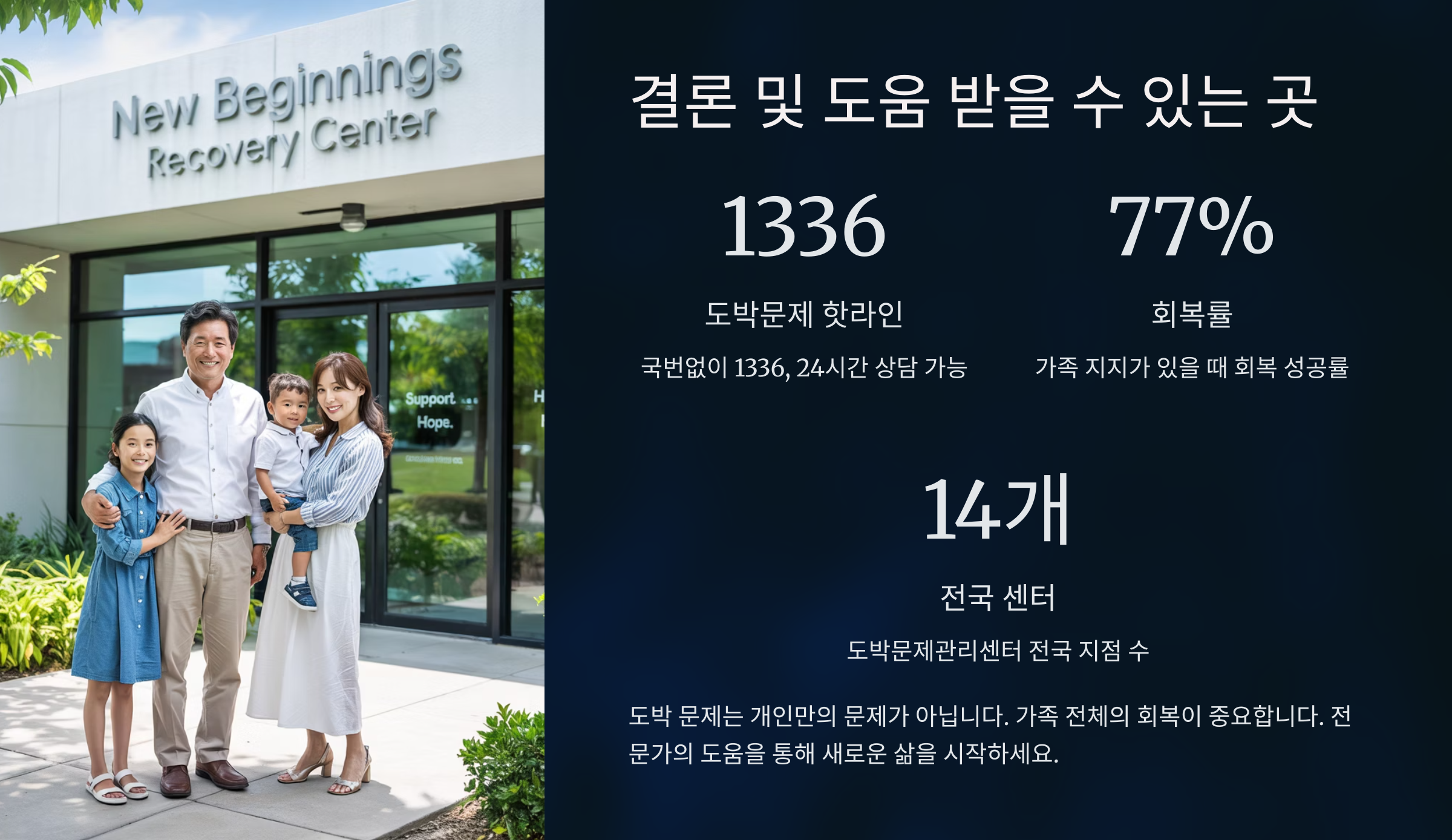 도박 문제는 개인만의 싸움이 아니라 가족 모두의 싸움이기도 해요. 그렇기 때문에 사랑하는 가족이 함께 지원하고 응원하는 게 정말 중요해요! 💪