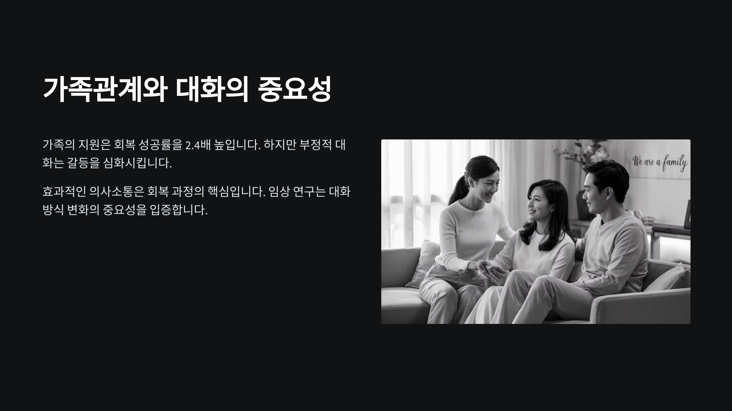도박중독은 개인의 문제로만 치부하기 쉽지만, 실제로는 가족 모두의 삶에 큰 영향을 미쳐요. 도박중독자뿐만 아니라 주변 사람들의 정신적, 경제적 고통까지 불러오는 복합적인 문제랍니다. 그래서 도박중독 문제를 함께 풀어가기 위해서는, 대화 방식부터 달라져야 해요.