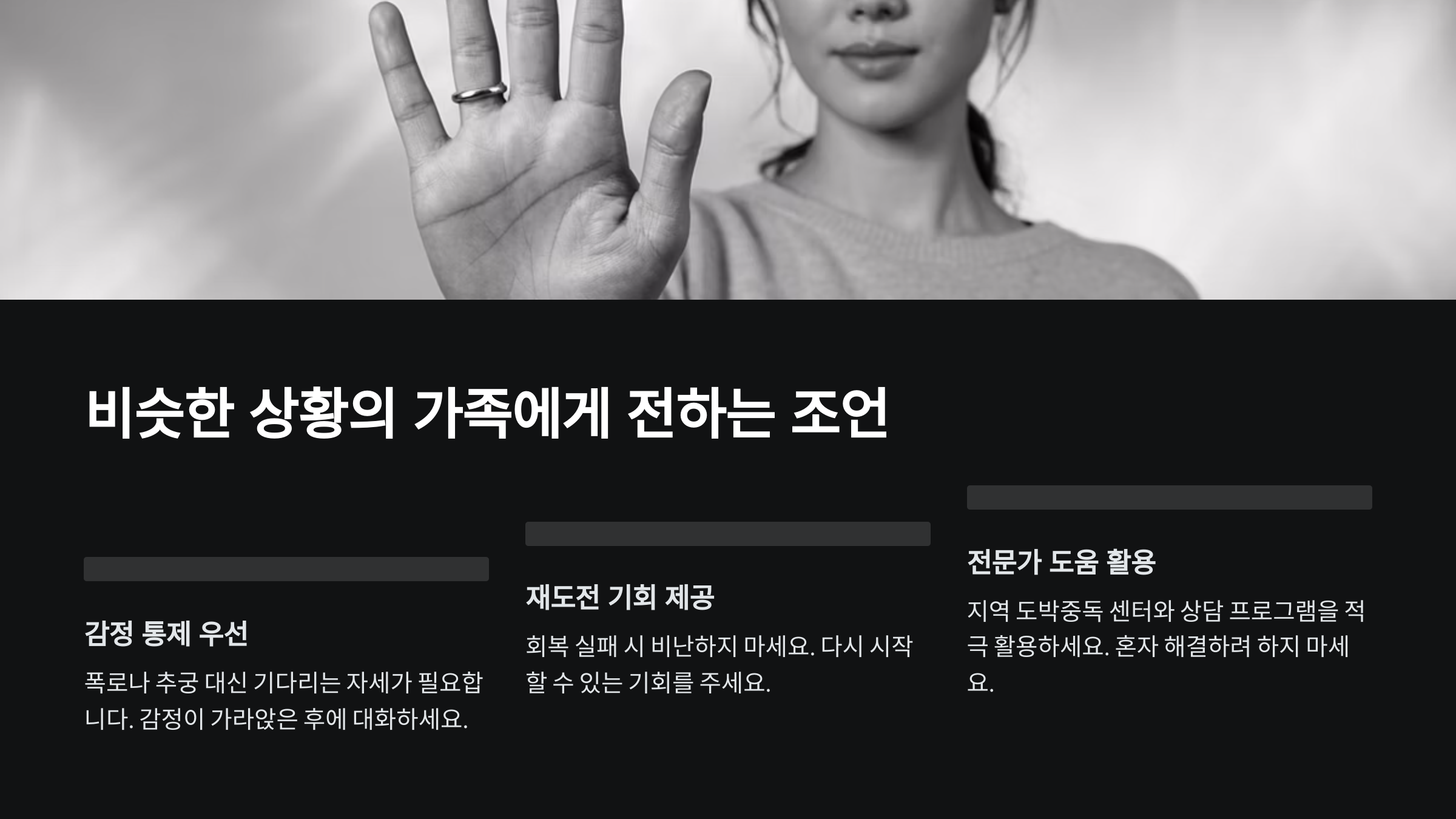 만약 지금 도박중독 가족 문제로 힘들어하는 사람이 있다면, 저는 이렇게 말해주고 싶어요. 먼저, 혼자서 다 짊어지려고 하지 말라고요. 도움을 요청하는 건 약한 게 아니라 현명한 선택이에요. 함께 짊어져야 할 문제니까요.