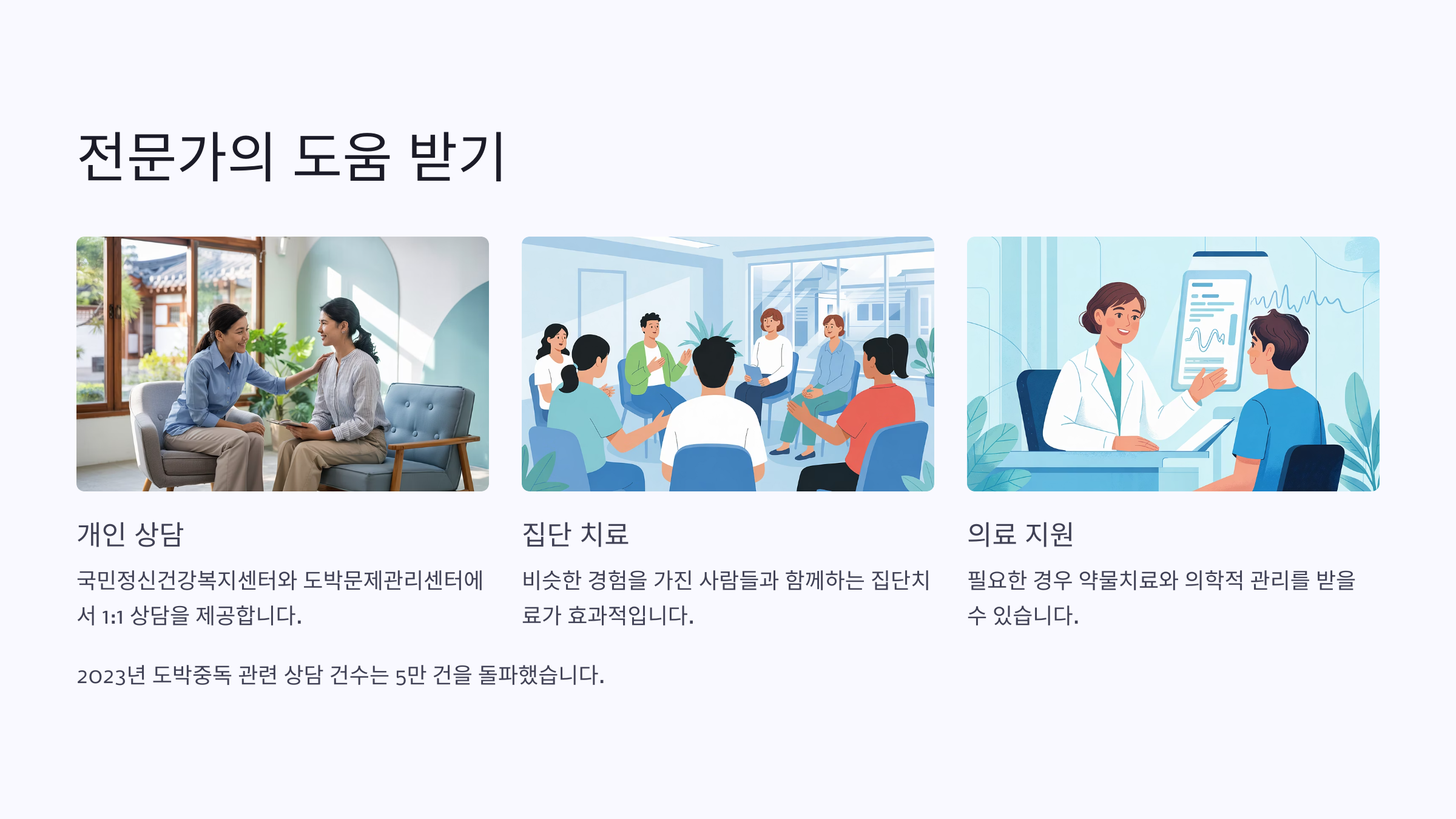 가장 도움이 됐던 건 중독 전문 상담이었어요. 중독이 단순한 습관 문제가 아니라 뇌의 구조적 변화 때문이라는 설명을 듣고, 가족 모두가 아들의 상황을 더 잘 이해할 수 있었어요.