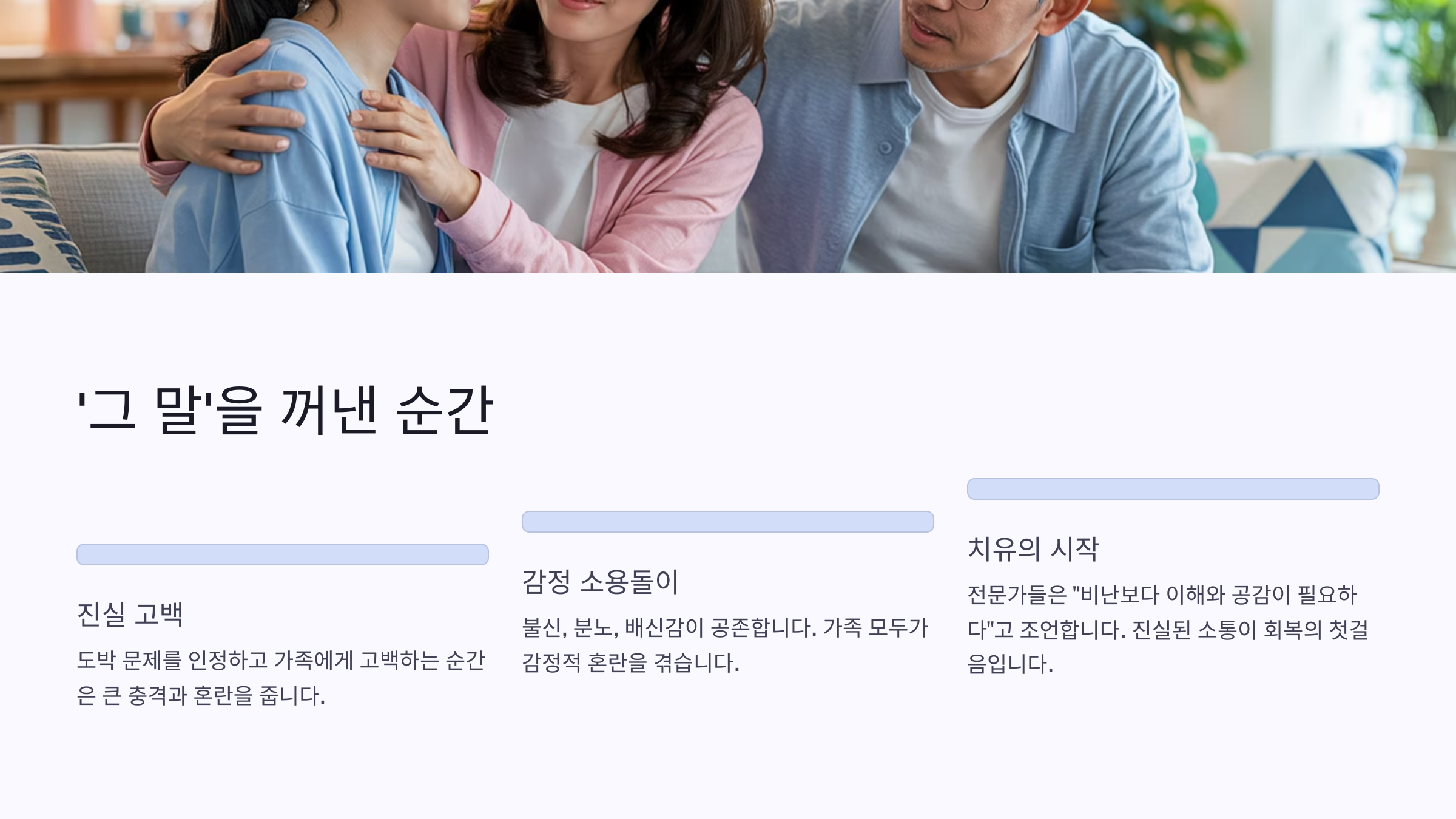 아들이 도박에 빠졌다는 사실을 처음 알게 되었을 때, 머릿속이 하얘졌어요. 믿기지 않았고, 부정하고 싶었어요. 하지만 시간이 흐를수록 부정은 아무런 해결이 되지 않는다는 걸 깨달았죠. 그 순간, '그 말'을 꺼낼 수밖에 없었어요.