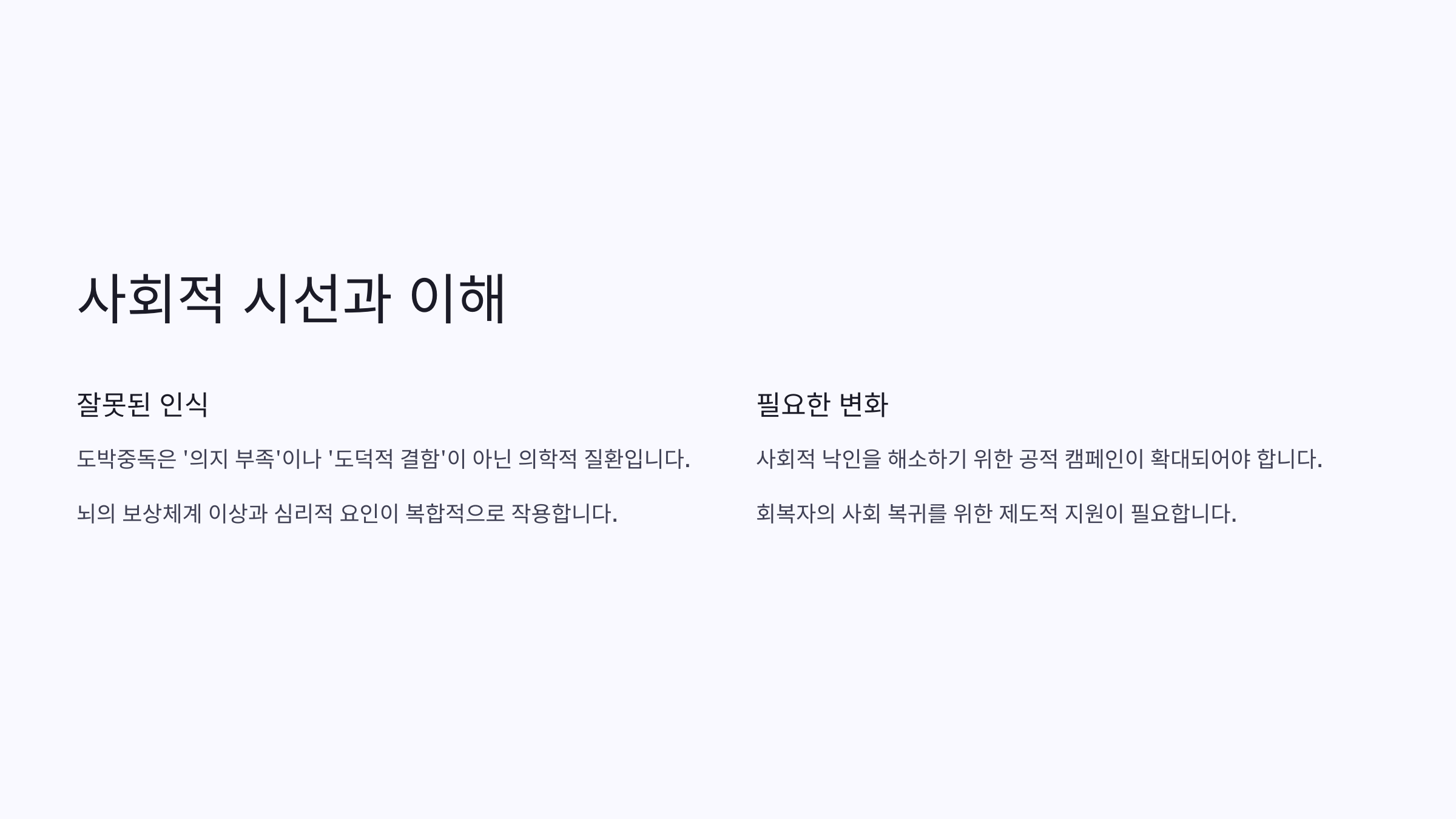도박중독을 바라보는 사회적 시선이 변해야 해요. 그리고 그 변화는 바로 우리 같은 사람들이 이야기를 나누는 것에서 시작된다고 생각해요.🌱