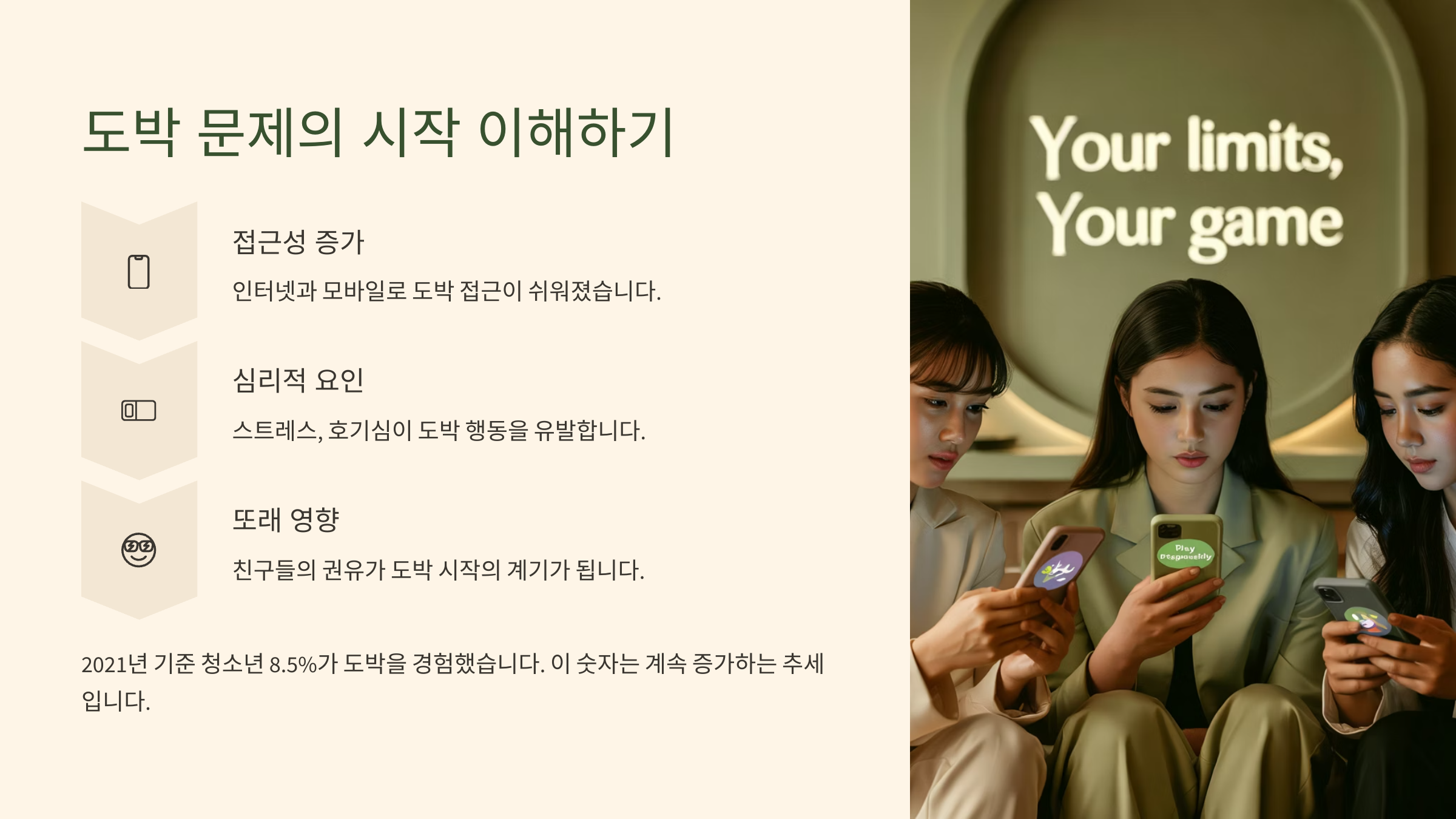 자녀가 처음 도박을 시작한 계기를 떠올리다 보면, 그저 재미나 호기심이었을 수도 있어요. 하지만 점차 통제력을 잃게 되고, 문제로 번지게 되는 거죠. 이런 과정을 알게 되면, 단순한 '나쁜 습관'이 아님을 조금씩 받아들일 수 있어요.