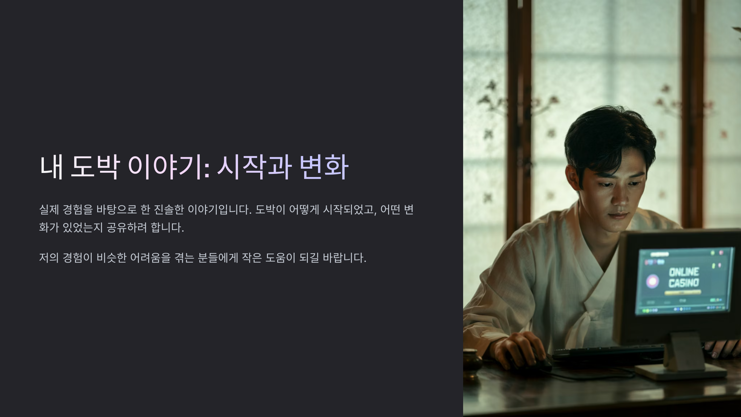 지금도 가끔 그 시절을 떠올리면 마음이 먹먹하지만, 이 경험이 누군가에게 힘이 된다면 그걸로 충분하다고 생각해요. 도박을 끊고 나니 삶이 다시 보이기 시작했어요. 내 인생, 다시 잘 살아보고 싶어요.