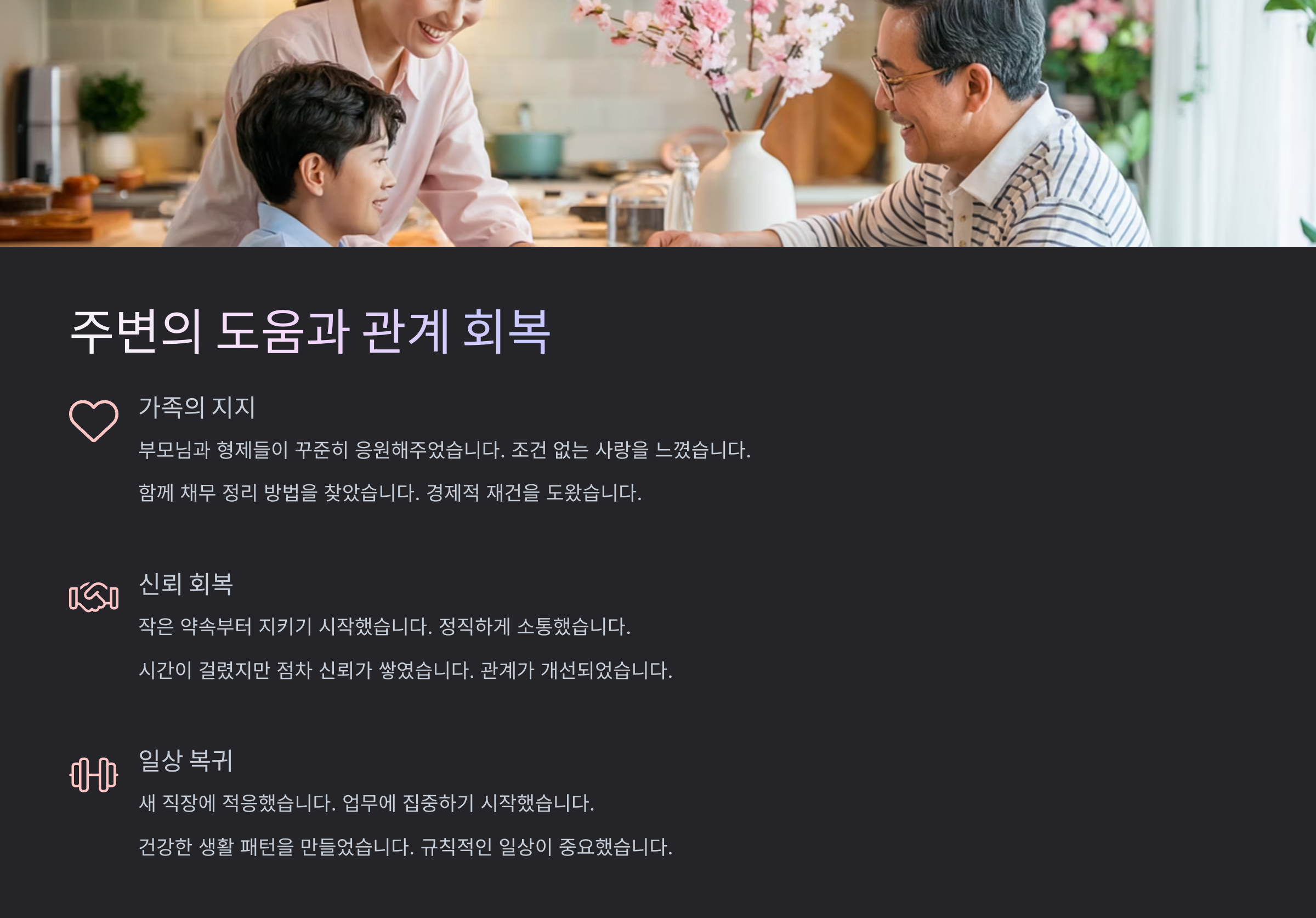 👨👩👧 주변의 도움과 관계 회복
