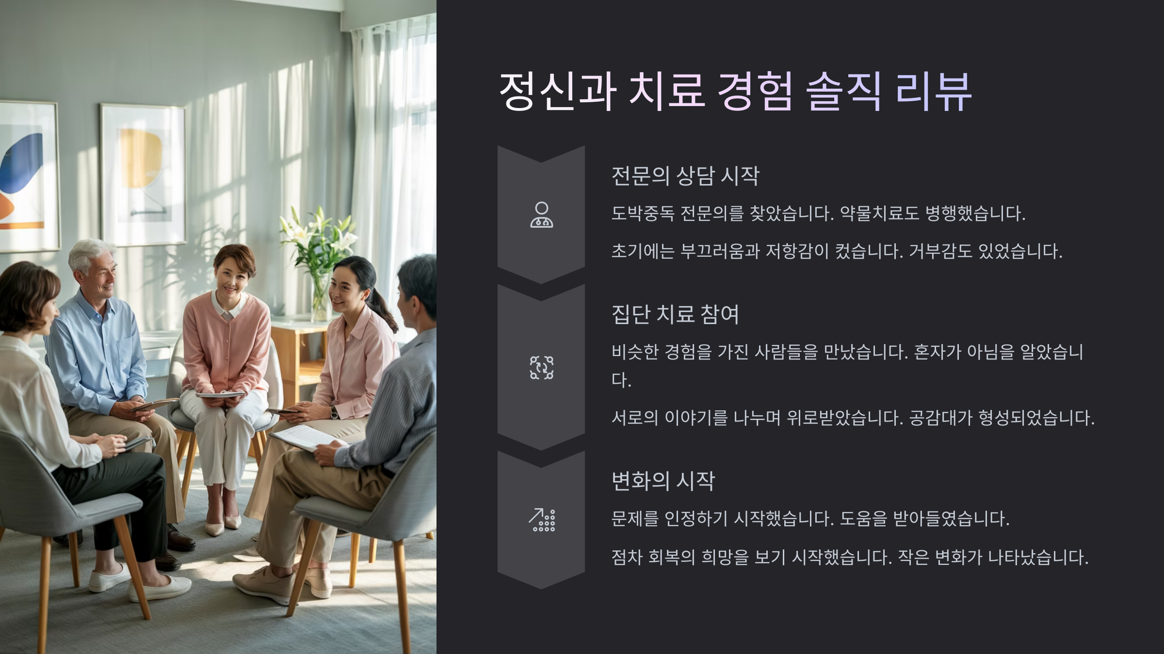 나는 정신과 문을 열 때 너무 부끄럽고 무서웠어요. 근데 진료실에서 첫 말을 꺼냈을 때, 눈물이 났어요. 그 말은 “저, 도박 때문에 인생이 망가졌어요…”였어요.