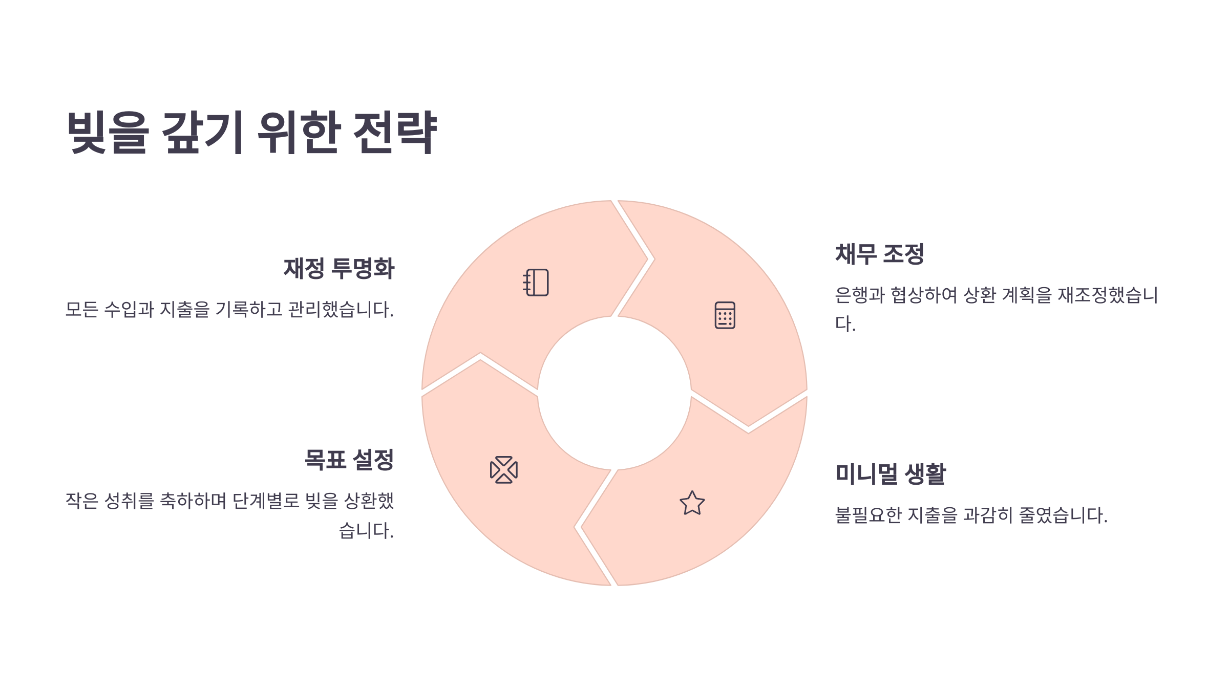 마지막 전략은 멘탈 관리였어요. 유튜브에서 자존감을 회복시키는 영상, 부채 청산 성공 사례를 매일 봤고, 일기를 쓰며 자신의 상태를 점검했어요. 그는 말해요. “돈도 중요하지만, 정신을 먼저 붙잡는 게 진짜 회복의 시작”이라고요.