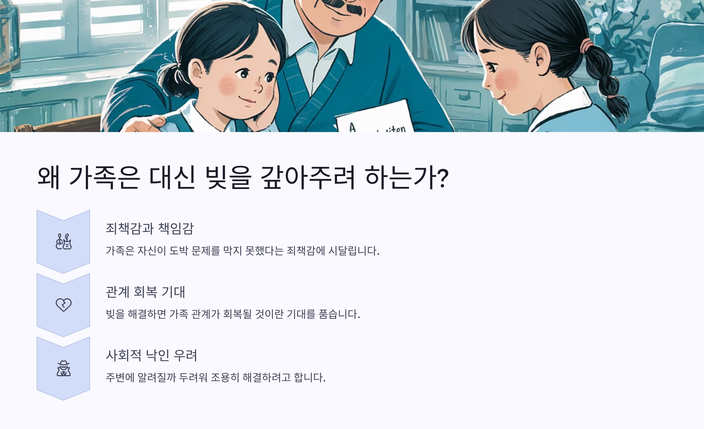 특히 부모님이나 형제자매, 혹은 오랜 친구라면 그들의 고통을 외면하는 게 쉬운 일이 아니에요. 사랑과 책임감이 강한 만큼, 빚을 대신 갚아주려는 마음이 생기게 돼요.