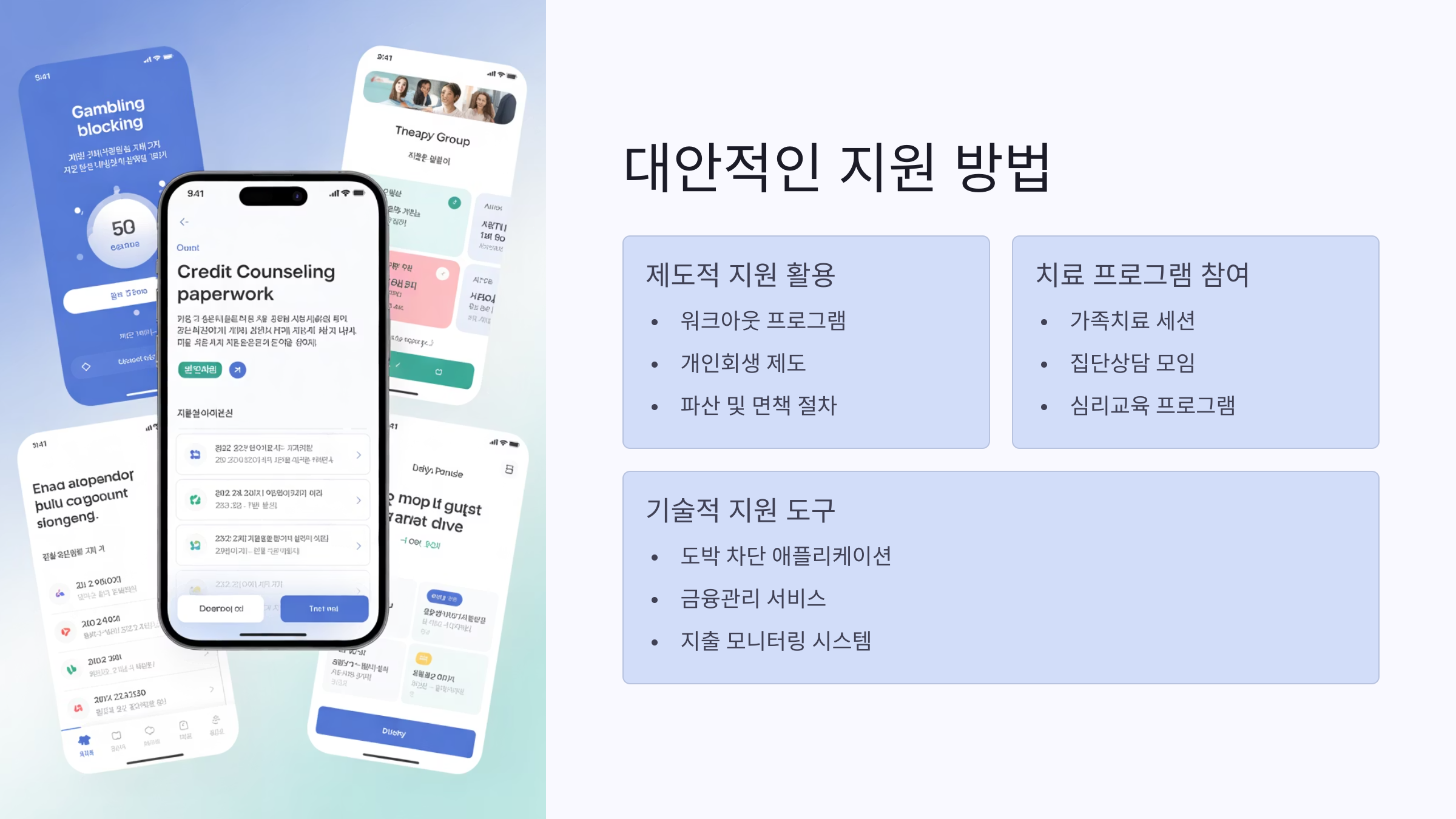 도박 문제를 해결하려면 단순한 '돈 문제'로만 접근해서는 안 돼요. 도박은 심리적, 사회적 문제이기 때문에 전인적인 회복이 필요해요.