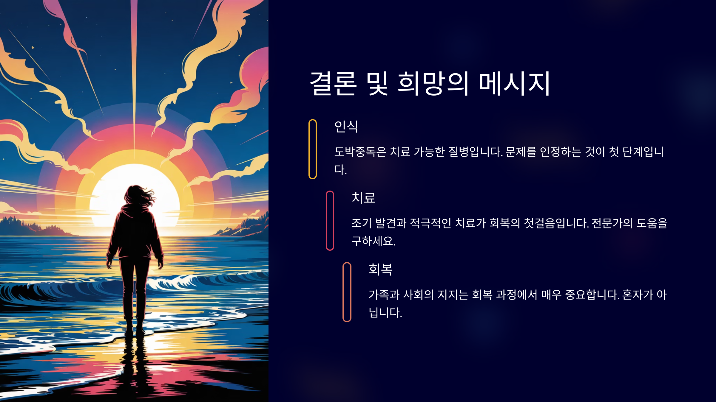 하지만 희망은 있어요. 지금부터라도 상황을 인식하고 필요한 도움을 받으면, 얼마든지 다시 건강한 삶으로 돌아올 수 있어요. 🌟