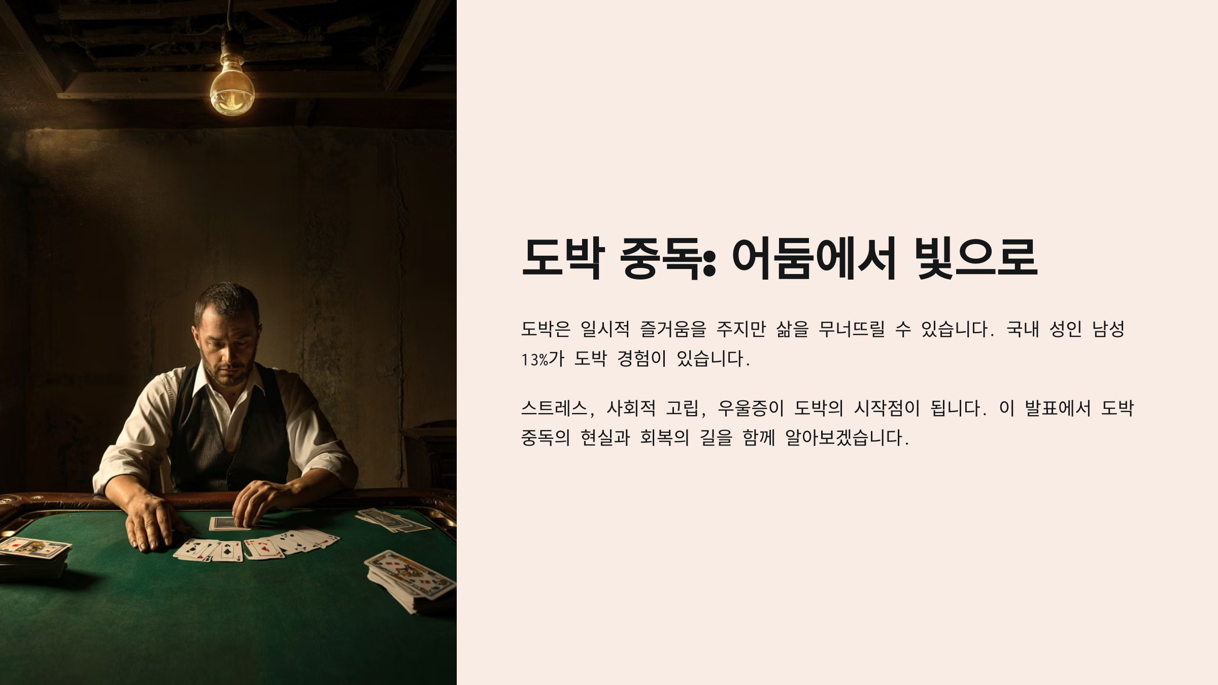 어떤 순간에도 포기할 수 없는 존재, 바로 자식이잖아요. 하지만 자식이 깊은 도박의 늪에 빠져있을 땐 그 사랑조차 무력하게 느껴지곤 해요. 이 이야기를 통해 같은 아픔을 겪는 누군가에게 작은 위로가 되기를 바라요.