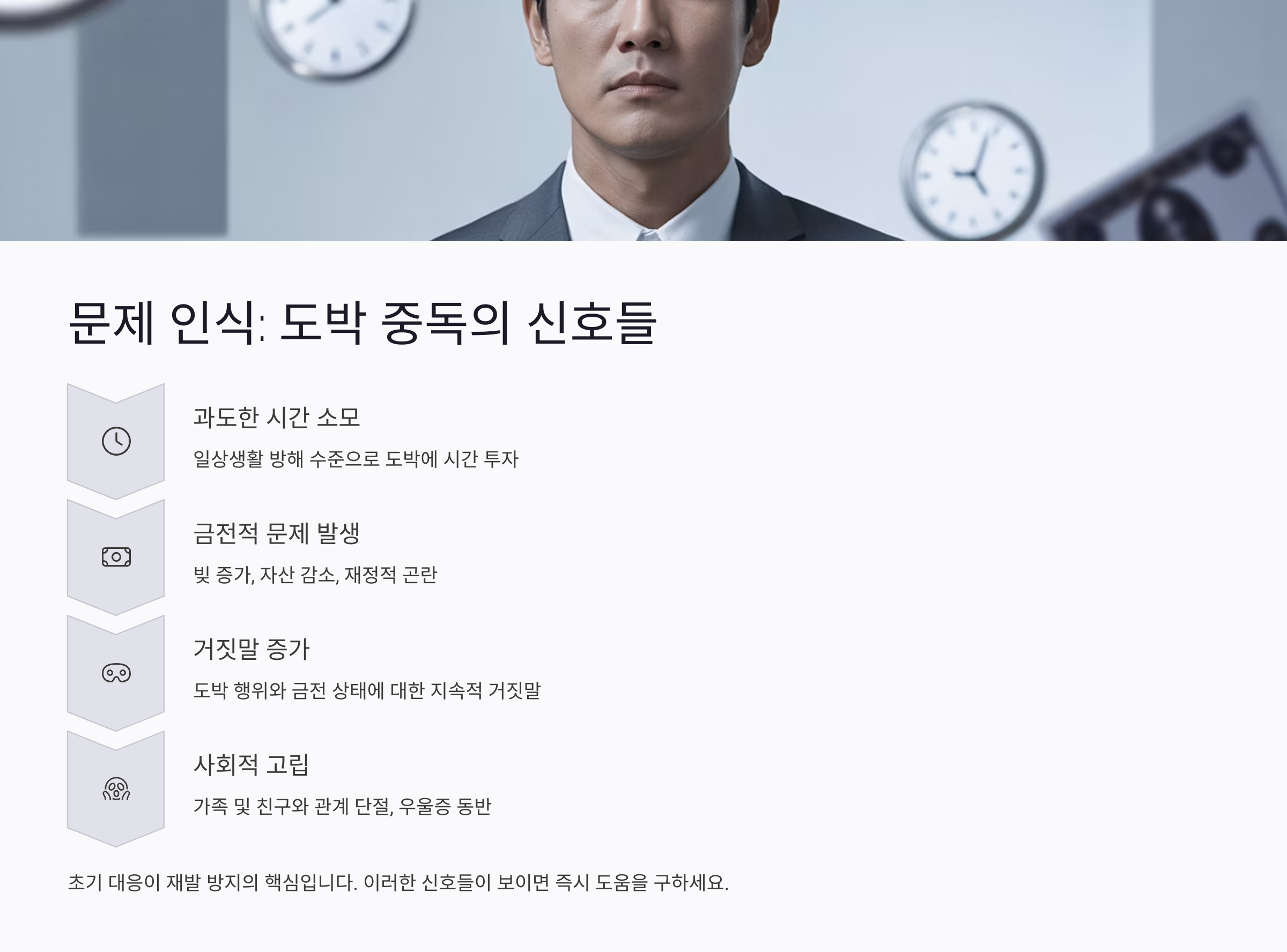 도박은 처음에는 작은 돈으로 시작하지만, 빠르게 중독으로 이어질 수 있어요. 보상심리가 작동하면서 '이번엔 이길 수 있어'라는 착각에 빠지기 쉬워요. 그래서 조기에 중단시키는 것이 무엇보다 중요하답니다.