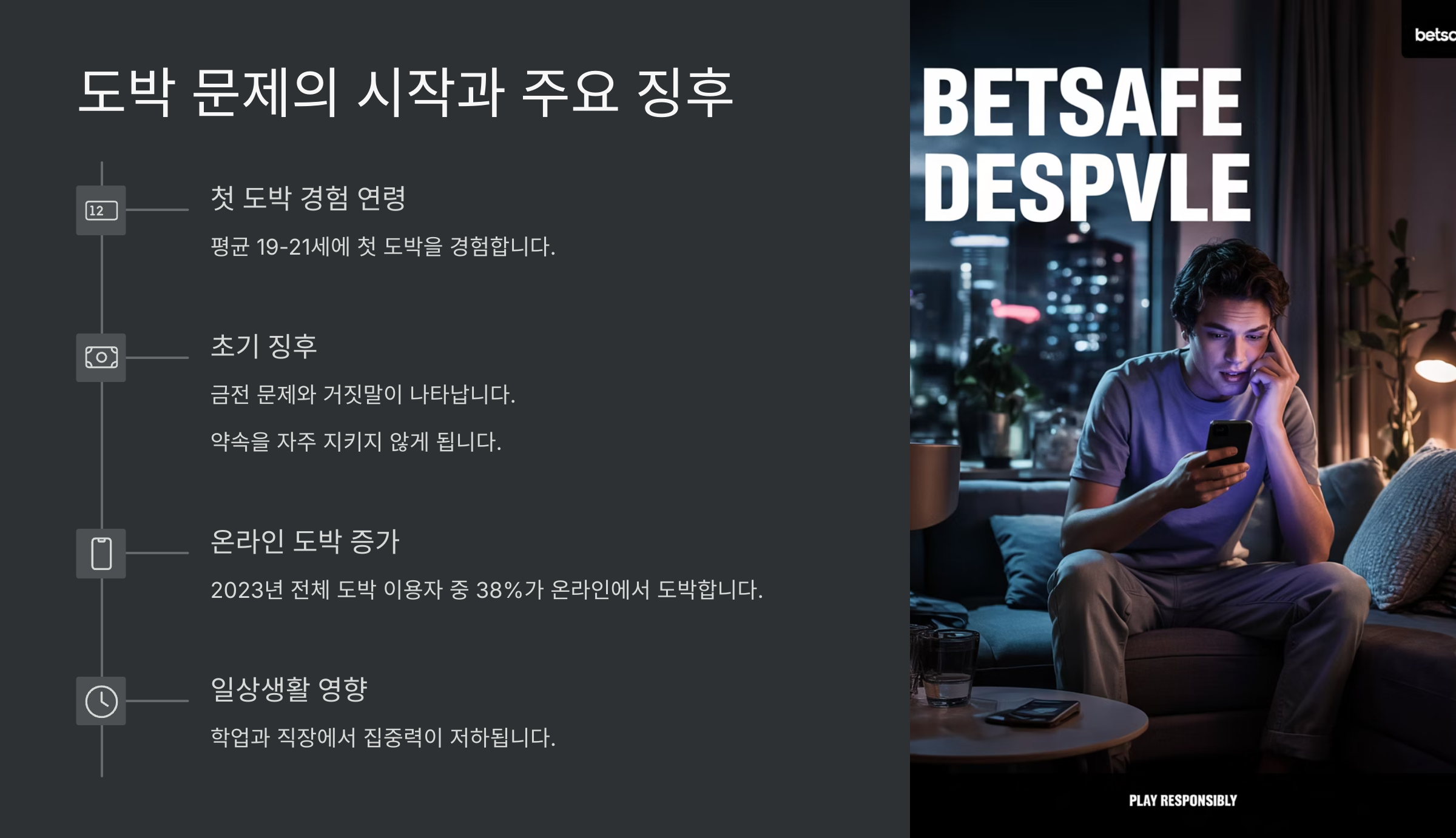 도박에 빠지기 시작한 자녀는 처음엔 단순한 호기심이나 친구의 권유로 시작하는 경우가 많아요. 스마트폰으로 손쉽게 접할 수 있는 온라인 게임이나 스포츠 베팅 앱은 접근성이 높아지면서 청소년까지 위험에 노출되고 있어요. 문제는 이런 시도가 반복되면서 뇌가 자극에 중독되고, 통제력을 잃게 된다는 거예요.