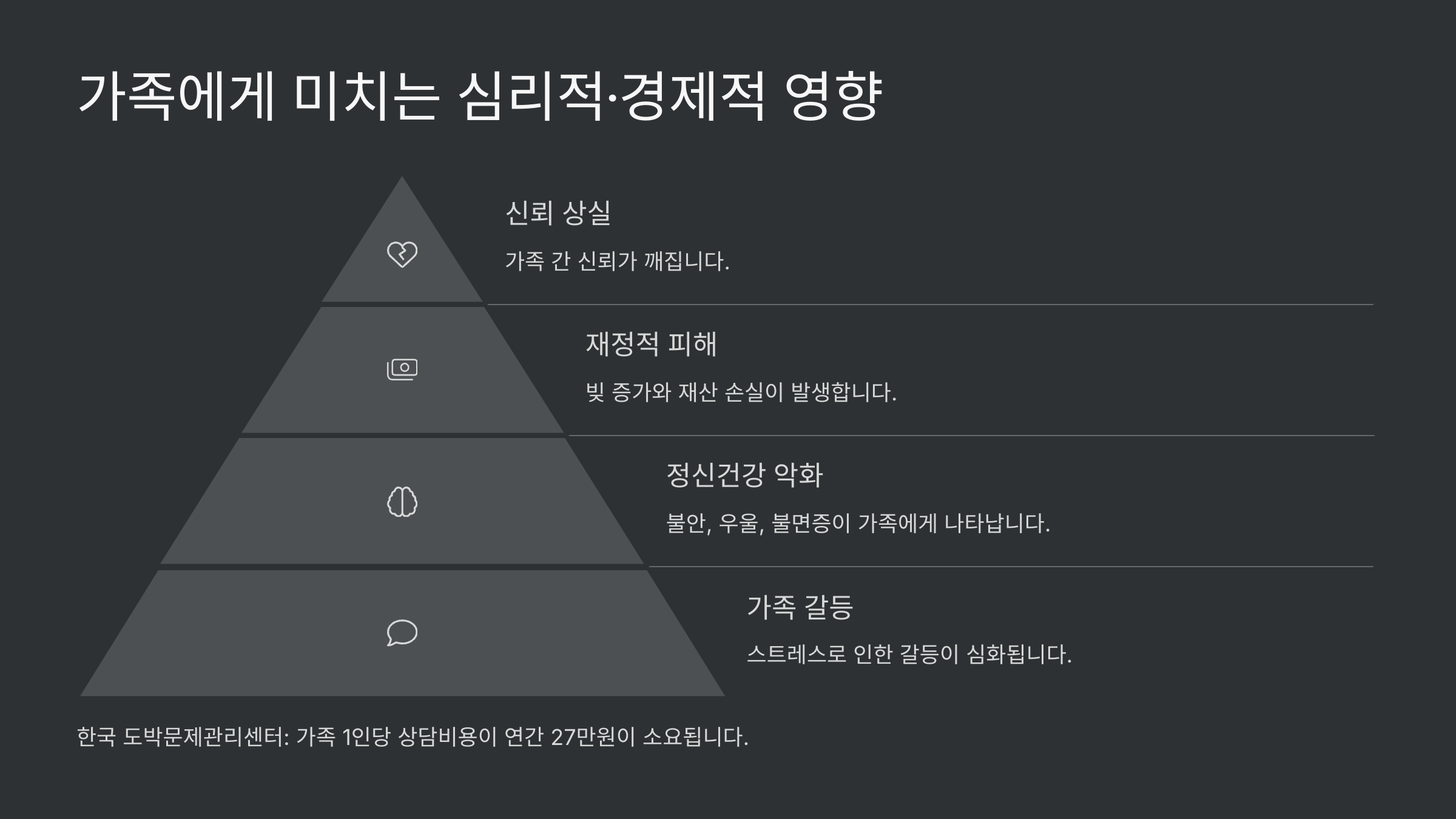 자녀의 도박 문제는 단지 개인의 문제가 아니라 가족 전체를 무너뜨릴 수 있는 위기예요. 부모는 자책하고, 형제자매는 상실감과 분노를 느끼기도 해요. 특히 부모는 "내가 뭘 잘못했을까?"라는 생각에 밤잠을 이루지 못하는 경우가 많죠.