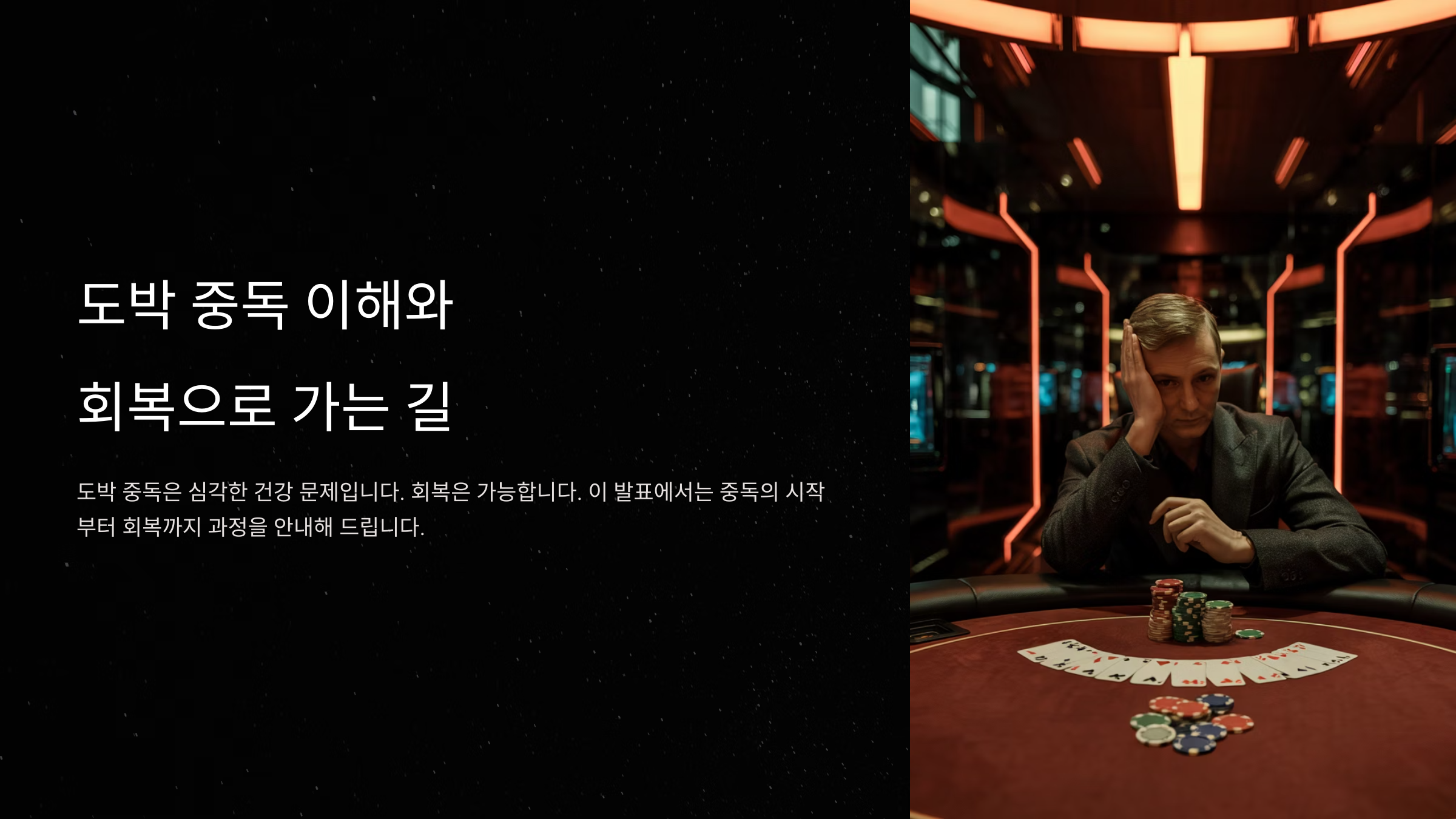 도박은 처음에는 큰 문제가 없어 보여요. 그러나 시간이 갈수록 돈을 잃고, 관계가 무너지고, 심지어 자존감까지 떨어지게 만들죠. 이런 악순환이 반복되면서 삶 전체가 흔들릴 수 있어요.